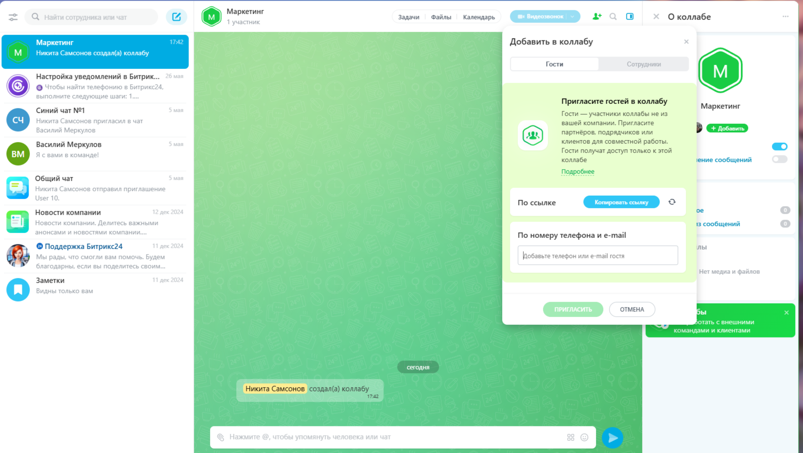 В каждой коллабе вы получаете полноценный набор инструментов для совместной работы с внешними участниками: