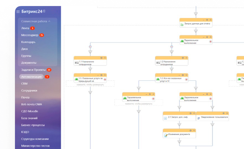 Встроенный конструктор позволяет автоматизировать процессы любых подразделений компаний, ускорить продажи и снизить затраты на рутинные задачи. Бизнес-процессы легко настраиваются без программирования благодаря low-код технологии.