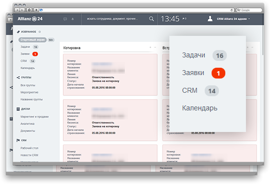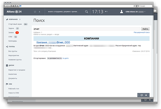 Стандартный функционал поиска «Битрикс24» модифицирован.