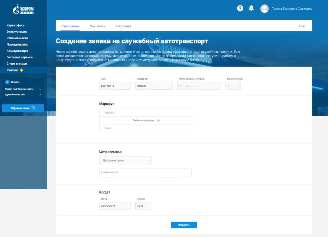 • В состав Газпром Нефти входит большое количество офисов, в каждом из которых был свой порядок оформления пропусков, заказа автотранспорта, бронирования переговорных комнат. Каждый раз при заказе услуги сотрудникам приходилось писать заявку по почте и проходить разные этапы её согласования. На этапе обращения в компанию "Первый Бит" Газпром Нефть нуждалась в решении, которое позволило бы создать единую систему заказа услуг для всех офисов, оптимизировать число рабочих инструментов, а также повысить вовлеченность сотрудников в корпоративную жизнь.