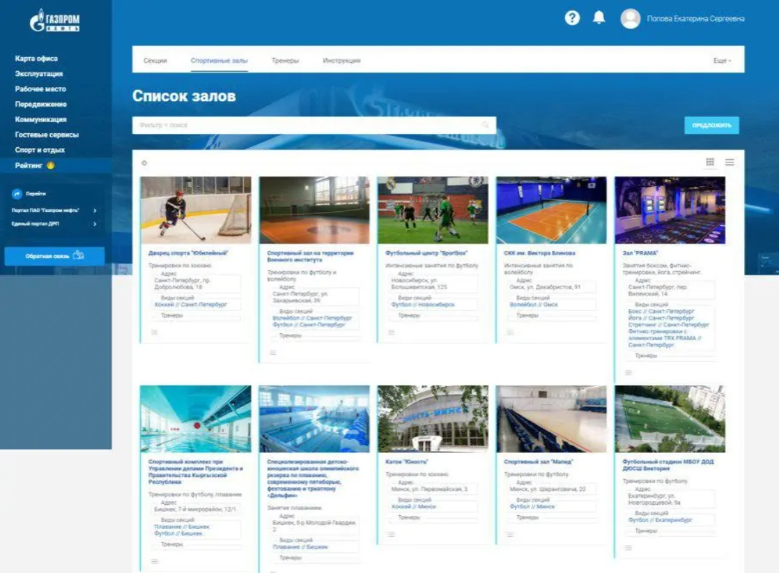 • Сотрудники могут записываться на спортивные занятия и повышать свой рейтинг активности.